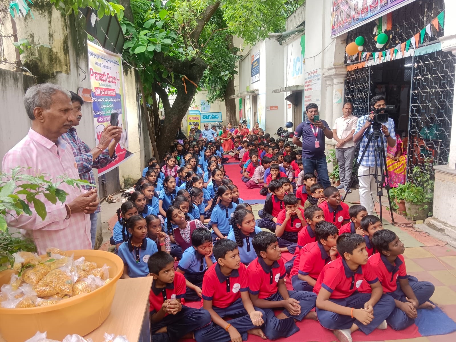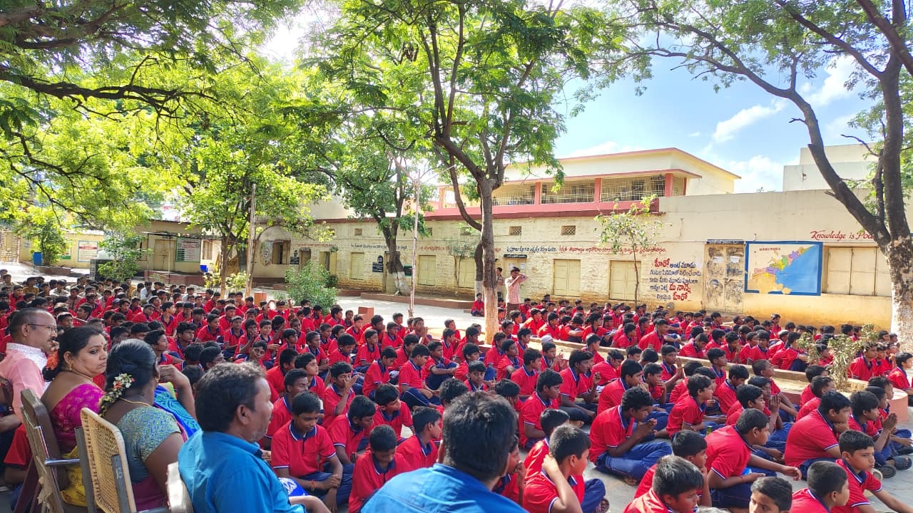 At his native village Chapadu in Kadapa district, Mr. Narendra Kumar distributed school bags and sports uniforms to 500 students at the school where he once studied.