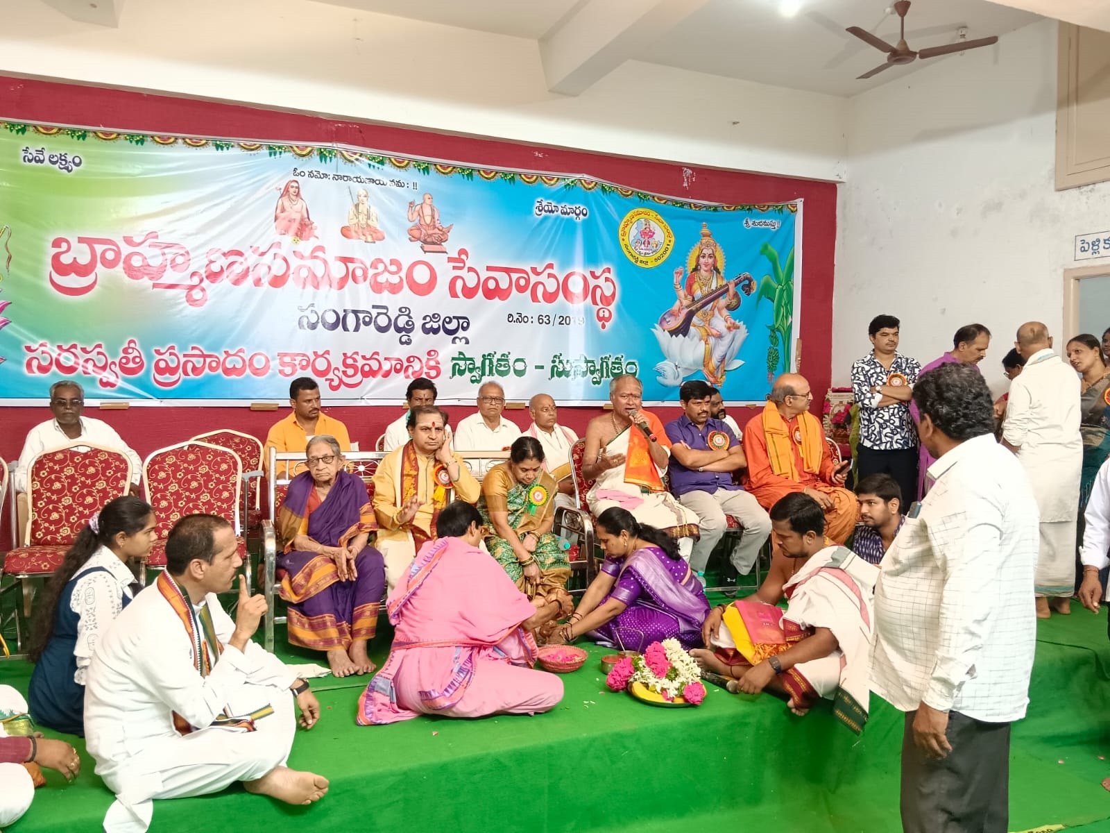 On behalf of the Kamaraju Annapurnamma Charitable Trust, Shri Praneeth Narendra, Chairman of Praneeth Group, presented an automatic power wheelchair worth approximately Rs. 1,00,000 (one lakh rupees) to Mrs. Rukmini, a Brahmin woman residing in Bachupally.